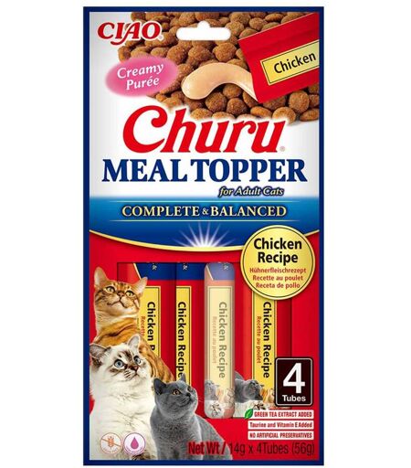 Inaba® Ciao® Churu® Crema Appetizzante per Gatti con Pollo 4 Stick da 14 Gr., questi snack leccabili per cani sono realizzati con pollo allevato in fattoria, puri e naturali al 100%! LA VITA DEL TUO GATTO È ORA COMPLETA: Completamente bilanciata. Abbiamo preso la stessa consistenza cremosa in purea dei Churu Lickable Cat Treats che amano e l'abbiamo riempita con tutte le vitamine e i minerali di un alimento, racchiusi in un tubo monodose. MANTIENI IDRATATO IL TUO FELINO SENZA AGGIUNGERE CALORIE:Ogni delizioso tubetto da 14 gr. contiene l'85% di umidità e solo 11 calorie. Uno spuntino perfetto per gatti avventurosi in movimento o gattini da interno che hanno bisogno di un po' di umidità in più nella loro dieta. SENZA COSE CATTIVE:Il tuo amico peloso felino è importante per noi, ecco perché abbiamo mantenuto i nostri Churu Meal Toppers privi di cereali, conservanti, carragenina e coloranti artificiali. FATELI MANGIARE DALLA VOSTRA MANO:Sebbene questo sia un Meal Topper completo e bilanciato, potete darglielo a mano come modo interattivo per trascorrere del tempo con il vostro felino o usarlo per camuffare le pillole. Questa è la cosa grandiosa dei tubetti: siete voi a decidere come servirli. Raccomandazioni per l’alimentazione:Quando si somministra come topper o integratore: ridurre l'assunzione di altri alimenti per il controllo del peso. Quando si somministra come pasto completo: somministrare circa 13 tubetti, dividendoli in 2 o 3 pasti al dì per 3 kg. di peso corporeo. Le quantità di cibo possono variare in base all'età, al livello di attività e ad altri fattori. Fornire acqua pulita e fresca ogni giorno. Per la salute del tuo animale domestico, consulta regolarmente il veterinario. ATTENZIONE: Non lasciare che il gatto mastichi o ingoi il materiale della confezione. Prestare particolarmente attenzione quando si offre il cibo con le mani. INGREDIENTI:・ Pollo 35%,・ Tapioca (essiccata),・ Estratto di capasanta 1,1%,・ Carbonato di calcio, ・ Cloruro di potassio, ・ Solfato di magnesio eptaidrato. Additivi per Kg: Additivi tecnologici:- Gomma di guar. Additivi organolettici:- Aromi,- Oleoresina di paprika,- Camelia Thea. Additivi nutrizionali:- Taurina 1,33 gr,- Vitamina B1,- Vitamina E 574 mg, - Cloruro di colina,- Solfato di zinco monoidrato 25,0 mg,- Vitamina K3,- Solfato di ferro (II) monoidrato 20,0 mg,- Vitamina A, - Chelato di rame (II) di idrato di glicina (solido) 1,9 mg,- Ioduro di potassio 0,4 mg,- Vitamina D3 125 UI,- Chelato di manganese di amminoacidi idrato 0,16 mg,- Vitamina B2, - Selenito di sodio, - Biotina,- Acido folico,- Vitamina B12. COMPONENTI ANALITICI:* Proteina grezza (min) 8,5%;* Grassi grezzi (min) 4,0%;* Fibra grezza (max) 0,1%;* Ceneri grezze 1,5%;* Umidità (max) 85%;* Energia 780 kcal/kg. ...
