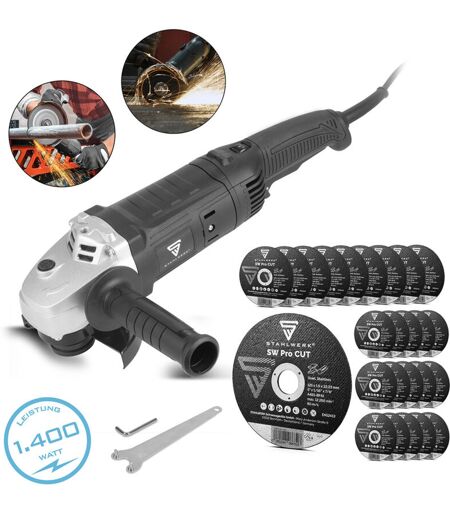 STAHLWERK Smerigliatrice angolare con set di 25 dischi da taglio 125 mm troncatrice 1600W