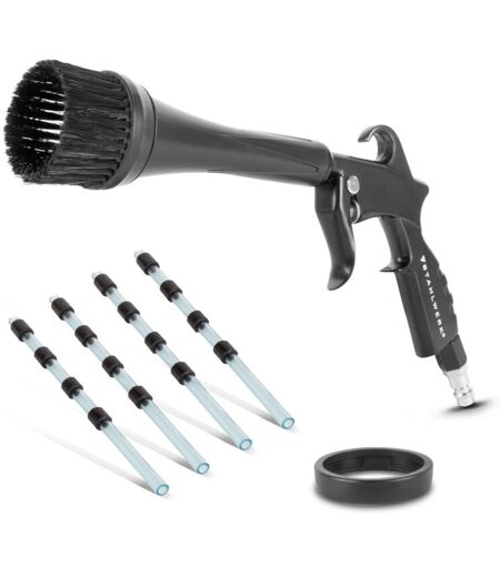 Caratteristiche Efficace pistola ad aria compressa per la pulizia accurata delle superfici sporche, soprattutto nella preparazione dei veicoli. L'ugello a spirale integrato genera un potente flusso d'aria a forma di spirale che rimuove senza fatica anche lo sporco più ostinato grazie all'effetto tornado, senza l'aggiunta di altri detergenti. Grazie all'effetto tornado, la pistola soffiante è perfetta per la pulizia a secco di tappezzeria, tappetini e componenti elettronici sensibili e per la pulizia approfondita di cerchioni, passaruota, fessure di ventilazione, guide dei sedili, ripiani delle portiere e cruscotti. Residui, polvere e sporcizia su tappezzeria, headliner, tappeti, pannelli delle porte e superfici in metallo, legno e plastica vengono rimossi in modo affidabile. Il design ergonomico e il peso ridotto consentono di lavorare comodamente e senza affaticarsi. Grazie alla sua lavorazione di alta qualità, la pistola per il lavaggio a secco convince per la sua sicurezza d'uso e ...