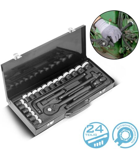 STAHLWERK Set di chiavi a bussola Cassetta di cricchetti da 24 pezzi con cricchetto reversibile da 1/2
