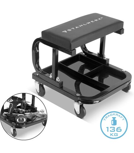 STAHLWERK Sgabello da officina WRS-35 st Nero con capacità di carico di 136 kg Sedile da officina -
