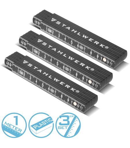STAHLWERK Set di 3 regoli pieghevoli da 1 metro Regolo pieghevole di precisione in plastica Regolo per metro