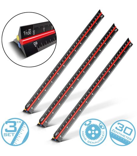 STAHLWERK Set di 3 righelli triangolari da 30 cm con scala metrica Righello per architetti -