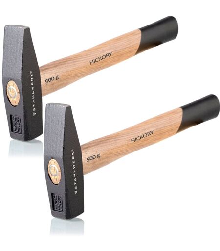 STAHLWERK 2 x martello da fabbro 500g testa robusta in acciaio, manico in legno di hickory -