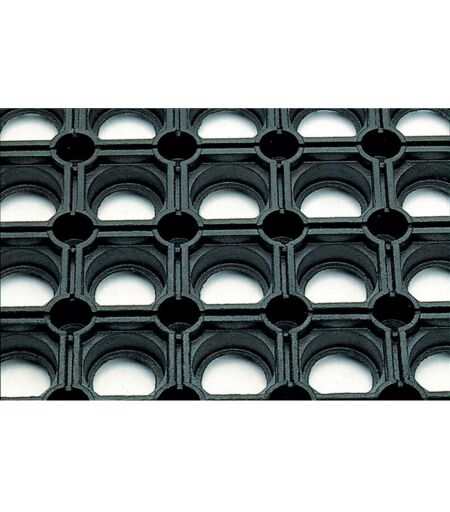 Stuoia dell'anello di gomma (stuoia del favo) Adatto per uso interno ed esterno Slip-proof Ideale per luoghi di lavoro e passerelle che vengono utilizzati intensamente, stuoia d'ingresso Le stuoie possono essere accoppiate con a vicenda usando le parti di collegamento Fondo sormontato Wubs dimensione: 4x4mm Senza suolo Non olio Festival Qualità: SBR/NR Durezza materiale: 60 Shore A Intervallo di temperatura: – 30 ° C a + 70 ° C Nero ...