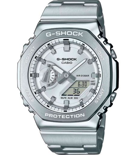 INFORMAZIONI GENERALI.Collezione:CASIO G-Shock.Target:Male.Military.Adult.MOVIMENTO E FUNZIONALITÀ.Casio Computer Co.LTD.5611.Quartz.Digital.Day Date Month & Year.Stopwatch, Alarm, Timer, Time Zones, Light.CASSA.Resin.Silver grey.Spessore 12mm.Diametro 44mm.CINTURINO/BRACCIALE.Stainless Steel.Silver grey.Larghezza mm.Lunghezza cm.QUADRANTE.Silver grey. ...