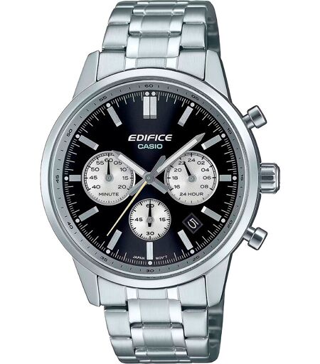 Collezione: Casio Edifice.Target: Uomo, Casual, Adulto.Movimento e Funzioni: Casio Computer Co. Ltd.Quarzo, Cronografo, Data, Cronometro.Cassa: Acciaio Inossidabile, Grigio Argento, Spessore 12Mm, Diametro: 40Mm.Cinturino/Bracciale: Acciaio Inossidabile, Grigio Argento, Larghezza Mm, Lunghezza Cm.Quadrante: Nero. ...