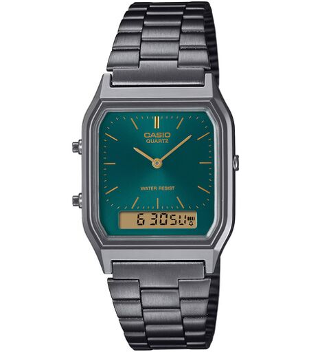 La classica combinazione analogico-digitale è rivestita di una splendida tonalità. Con quadrante Sunray per un tocco di colore ed eleganza in un design tradizionale. Cinturino in acciaio inossidabile con chiusura regolabile grigio con placcatura ionica. Dimensioni: 38.8 x 29.8 x 8.1 mm. Impermeabilità per l'uso quotidiano e pratiche funzioni come calendario automatico, formato 12/24 ore con indicatore dell'ora regolare, disponibile formato analogico (due lancette) e digitale (ora, minuti, secondo, pm, data, giorno del mese). Opzione di promemoria sonoro e segnale orario. Materiale della cassa e della lunetta: resina/nero cromato. Durata approssimativa della batteria: 3 anni con SR920W. ...