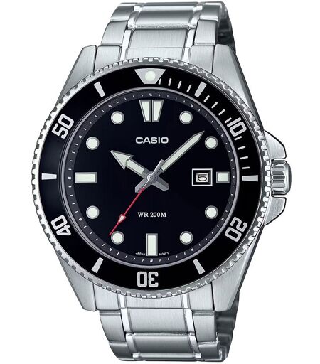 Collezione:CASIO Collection.TARGET:Uomo.Casual.Adulto.MOVIMENTO E CARATTERISTICHE:Quarzo.Analogico.Giorno e data.CASSA:Acciaio inossidabile.Grigio argento.Spessore 12mm.Diametro 44mm.CINTURINO/BRACCIALE:Acciaio inossidabile.Grigio argento.QUADRANTE:Nero. ...