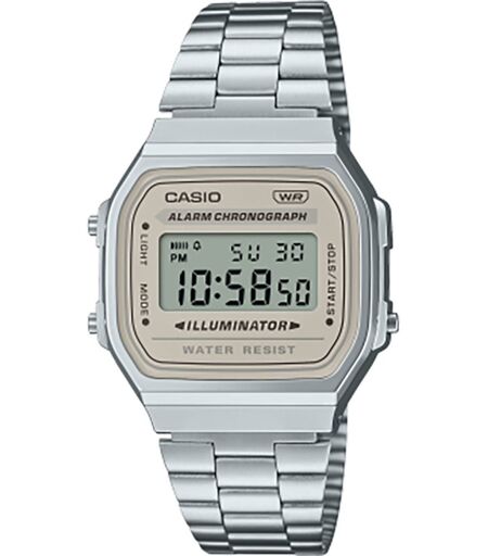 Illuminatore.Un pannello elettroluminescente illumina l´intero quadrante dell´orologio per una facile lettura.Cronometro - 1/100 sec.- 1 ora.Tempo trascorso, tempi parziali e tempo finale sono misurati al centesimo di secondo.L´orologio è in grado di cronometrare fino a un´ora.Allarme giornaliero.L´allarme giornaliero suona all´ora preimpostata per ricordarvi gli eventi che si ripetono quotidianamente.Calendario automatico.Una volta impostato, il calendario automatico visualizza sempre la data corretta.Visualizzazione dell´ora normale 12/24 ore.Gli orari sono visualizzati nel formato 12 o 24 ore.Vetro acrilico.Cassa in resina.Cinturino in acciaio inossidabile.Robusto, resistente ed elegante.Il cinturino in acciaio inossidabile è un classico degli orologi.Chiusura regolabile.La chiusura può essere facilmente regolata individualmente per il massimo comfort.7 anni - 1 batteria.La batteria fornisce all´orologio l´energia necessaria per ca.7 anni.Classificazione di resistenza all´acqua (WR) secondo ISO 22810.Questo modello è resistente all´acqua secondo DIN 8310 o ISO 22810 e può resistere a piccoli schizzi d´acqua.Evitare qualsiasi ulteriore contatto con l´acqua.Dimensioni (L x A x P).38.6 mm x 36.3 mm x 9.6 mm.Peso.ca.49 g. ...