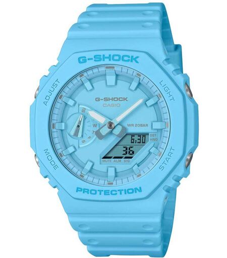 Scopri il G-SHOCK Tone-on-Tone:orologi con un´estetica monocromatica curata nei minimi dettagli.Il GA-2100 sfoggia la sua forma iconica in uno stile monocromatico, disponibile in tre colori:blu turchese, bianco e giallo volt.La cassa, la lunetta e persino i componenti del quadrante sono rifiniti in tonalità leggermente diverse dello stesso colore per un look monocromatico che vanta una profondità e una dimensione sorprendenti.Questi orologi colorati sono un accessorio fantastico per i tuoi look più urbani. ...