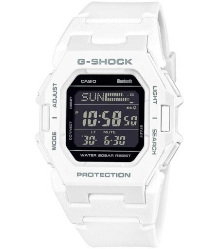 Collezione:CASIO G-Shock.TARGET:Uomo.Sportivo.Adulto.MOVIMENTO E CARATTERISTICHE:Casio Computer Co.LTD.Solare.Digitale.Giorno Data e Mese.Cronometro, Sveglia, Timer, Formato 24 ore, Fusi Orari, Luce.CASSA:Resina.Bianca.Spessore 11mm.Diametro 41mm.CINTURINO/BRACCIALE:Resina.Bianco.QUADRANTE:Nero.LCD ...
