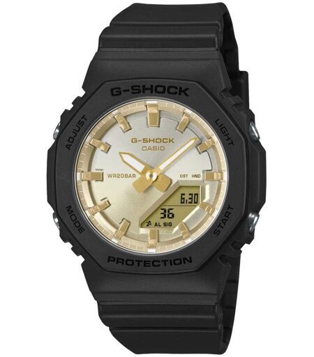 Presentazione del CASIO G-SHOCK GMA-P2100SG-1AER, un orologio unisex robusto ed elegante progettato per l´avventura. Questo orologio fonde perfettamente la rinomata resistenza di G-SHOCK con un design elegante e moderno, che lo rende l´accessorio perfetto per chi esige prestazioni e raffinatezza.Realizzato con materiali ad alta resistenza, il GMA-P2100SG-1AER vanta un´eccezionale resistenza agli urti, garantendo la resistenza ai rigori degli stili di vita attivi. La sua struttura con anima in carbonio ne aumenta la robustezza, proteggendo il modulo interno da urti e vibrazioni.Oltre alla sua robustezza, questo G-SHOCK offre una gamma di funzioni avanzate progettate per tenerti sempre al top. L´orologio incorpora la connettività Bluetooth®, che consente la sincronizzazione perfetta con lo smartphone per un cronometraggio accurato e un accesso alle notifiche senza sforzo. Rimani informato senza interrompere la tua andatura mentre chiamate, e-mail e avvisi dai social media vengono visualizzati discretamente sullo schermo digitale dell´orologio.Navigare tra le funzioni dell´orologio è intuitivo grazie al suo display analogico-digitale. La combinazione di un quadrante analogico chiaro e di facile lettura e di uno schermo digitale ad alta risoluzione consente di accedere a colpo d´occhio a una vasta gamma di informazioni, tra cui data, giorno della settimana, funzioni cronometro e altro ancora.Il GMA-P2100SG-1AER non è solo un orologio, è una dichiarazione. Il suo design audace è completato da un cinturino in resina comodo e sicuro, che garantisce una vestibilità perfetta per qualsiasi polso. Che tu stia conquistando montagne o navigando per le strade della città, questo G-SHOCK sarà il tuo fidato compagno.Specifiche tecniche:Dimensioni cassa: 47.7 mmSpessore cassa: 11.2 mmResistenza all´acqua: 200 metriMateriale: cassa e cinturino in resinaVetro: Vetro mineraleMovimento: quarzoDurata della batteria: circa 3 anniConnettività: Bluetooth®Altre caratteristiche: luce LED, ora mondiale, cronometro, conto alla rovescia, 5 sveglie, calendario, ricerca telefono ...