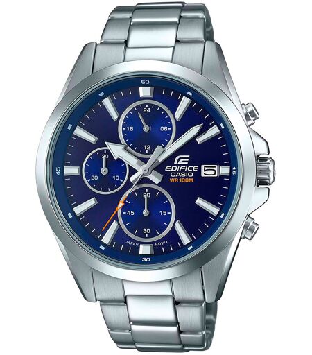 INFORMAZIONI GENERALI.Collezione:CASIO Edifice.Target:Male.Casual.Adult.MOVIMENTO E FUNZIONALITÀ.Casio Computer Co.LTD.Quartz.Chronograph.Date.Stopwatch.CASSA.Stainless Steel.Silver grey.Spessore 12mm.Diametro 44mm.CINTURINO/BRACCIALE.Stainless Steel.Silver grey.Larghezza mm.Lunghezza cm.QUADRANTE.Blue. ...