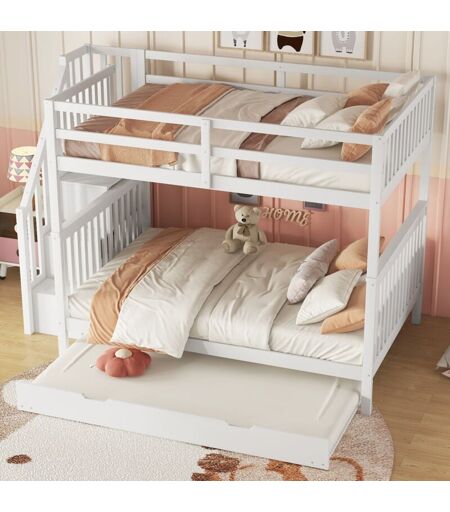 HAUSS SPOLE - Lit superposé, lit enfant étagère d'escalier, garde-corps hauts, bianco - 140x200cm, avec lit gigogne