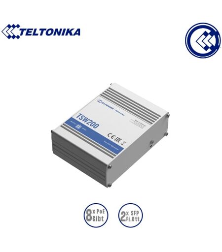 TELTONIKA TSW200 Switch industrial unmanaged 8 porte Gbps 8 PoE 802.3af/at con 2 porte SFP,240W