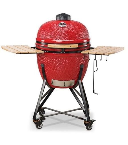 Kamado Bono Grande Rosso - TQ0023RED La parola Kamado si riferisce a tutti i tipi di barbecue costruiti in ceramica e deriva dal giapponese dove Kamado significa letteralmente "un posto per una pentola bollente". I moderni grill Kamado sono composti da diverse ceramiche o altri materiali resistenti al calore (terracotta, cemento o miscele di rocce laviche macinate). Anche la superficie esterna del dispositivo può variare notevolmente: può essere rivestita da uno smalto ceramico lucido, pittura, gessi decorativi o mosaici ceramici. Le ceramiche moderne e i materiali resistenti al fuoco proteggono il dispositivo dagli shock termici e dalla eventuale rottura. Normalmente un Kamado viene alimentato con carbone di legna, che non produce molta cenere e non contiene impurità che possono alterare il sapore del cibo, che avrà il classico aroma del cibo cotto su un fuoco naturale. Un grill in ceramica può raggiungere temperature fino a 400°C d allo stesso tempo permette di regolare il flusso ...