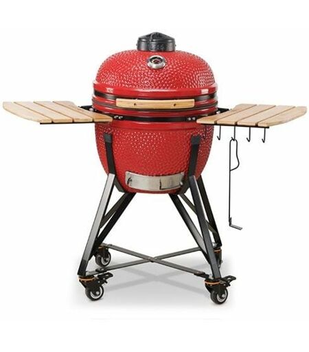 Kamado Bono Media Rosso - TQ0020RED La parola Kamado si riferisce a tutti i tipi di barbecue costruiti in ceramica e deriva dal giapponese dove Kamado significa letteralmente "un posto per una pentola bollente". I moderni grill Kamado sono composti da diverse ceramiche o altri materiali resistenti al calore (terracotta, cemento o miscele di rocce laviche macinate). Anche la superficie esterna del dispositivo può variare notevolmente: può essere rivestita da uno smalto ceramico lucido, pittura, gessi decorativi o mosaici ceramici. Le ceramiche moderne e i materiali resistenti al fuoco proteggono il dispositivo dagli shock termici e dalla eventuale rottura. Normalmente un Kamado viene alimentato con carbone di legna, che non produce molta cenere e non contiene impurità che possono alterare il sapore del cibo, che avrà il classico aroma del cibo cotto su un fuoco naturale. Un grill in ceramica può raggiungere temperature fino a 400°C d allo stesso tempo permette di regolare il flusso ...