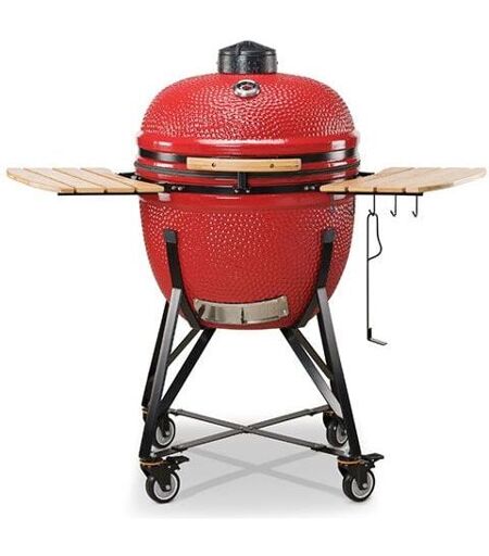 Kamado Bono Grande Limited Rosso - TQ0025RED La parola Kamado si riferisce a tutti i tipi di barbecue costruiti in ceramica e deriva dal giapponese dove Kamado significa letteralmente "un posto per una pentola bollente". I moderni grill Kamado sono composti da diverse ceramiche o altri materiali resistenti al calore (terracotta, cemento o miscele di rocce laviche macinate). Anche la superficie esterna del dispositivo può variare notevolmente: può essere rivestita da uno smalto ceramico lucido, pittura, gessi decorativi o mosaici ceramici. Le ceramiche moderne e i materiali resistenti al fuoco proteggono il dispositivo dagli shock termici e dalla eventuale rottura. Normalmente un Kamado viene alimentato con carbone di legna, che non produce molta cenere e non contiene impurità che possono alterare il sapore del cibo, che avrà il classico aroma del cibo cotto su un fuoco naturale. Un grill in ceramica può raggiungere temperature fino a 400°C d allo stesso tempo permette di regolare il ...