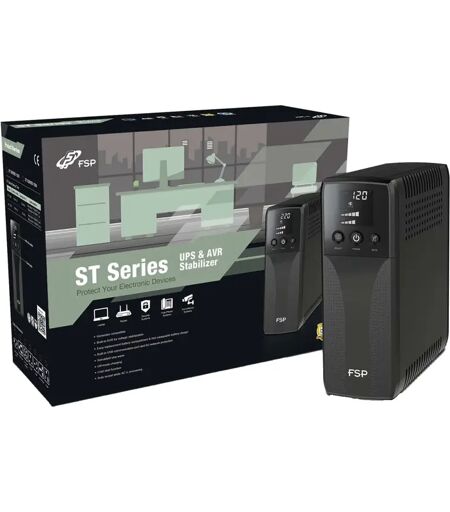 FSP ST 1200. Topologia UPS: A linea interattiva, Potenza in uscita: 1,2 kVA, Potenza in uscita: 720 W. Tipo di uscita AC: Tipo F, Quantità prese AC: 4 presa(e) AC, Tipo di porta USB: USB di tipo B. Capacità della batteria: 18 Ah, Voltaggio della batteri ...