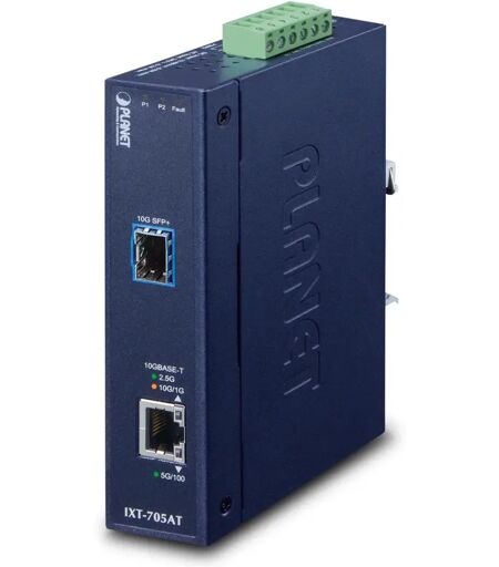 PLANET IXT-705AT convertitore multimediale di rete 20000 Mbit/s Nero (Industrial 10G/5G/2.5G/1G/100M - Copper to 10GBASE-X SFP+ Media Converter [-40 75 degree C, dual redundant power input on 12-48VDC Warranty: 60M) [IXT-705AT]