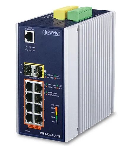 PLANET IGS-6325-8UP2S switch di rete Gestito L3 Gigabit Ethernet [10/100/1000] Supporto Power over [PoE] Alluminio, Nero (P30 DIN-rail Industrial 8P - 10/100/1000T 802.3bt PoE + 2-port 100/1000X SFP Full Managed Switch Warranty: 60M) [IGS-6325-8UP2S]