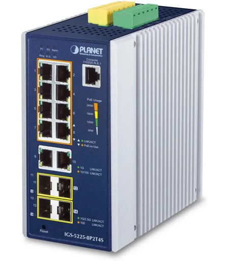 Switch di rete PLANET IP30 Industrial L2+/L4 8-Port - 1000T 802.3at PoE+ 2-port 10/100/1000T + 2-Port 100/1G SFP 1G/2.5G Warranty: 36M [IGS-5225-8P2T4S] ...