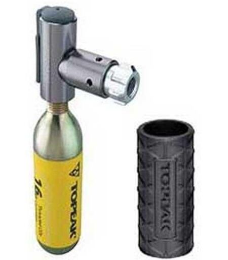 Manutenzione - Pompe.Cartuccia CO2 AirBooster TOPEAK.Testa di gonfiaggio CO2 Air Booster con 1 cartuccia CO2 da 16 g e guaina protettiva. ...