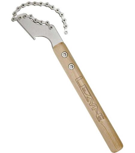 Negozio frusta catena di qualità con lo strumento anello di bloccaggio integrato. Manico in legno verniciato classico con la testa cromo-molibdeno. catena di Lezyne personalizzato, fissato con fissaggi inossidabili per una facile sostituzione. Compatibile con 8/9/10/11 cassette di velocità. ...