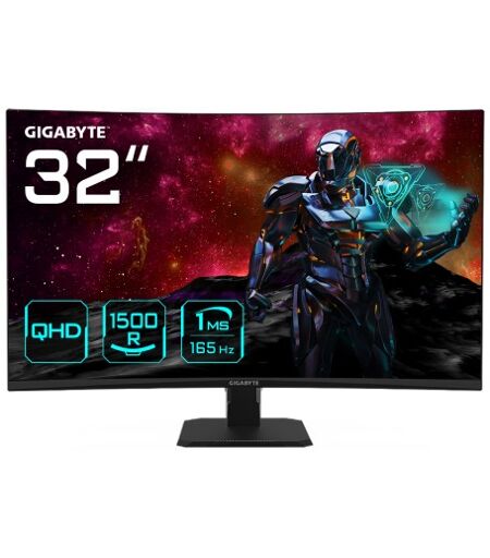 GIGABYTE GS32QC 31.5" Monitor da Gioco Curvo QHD - 2560 x 1440, 1500R, 165Hz, 1ms, 300 cd/m², FreeSync Premium, HDR Ready, HDMI