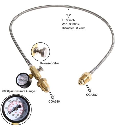 TLILY Tubo Adattatore di Trasferimento Stazione Ricarica per Bombola Argon bs 341 n. 3 (Regno Unito), o CO2, CGA580