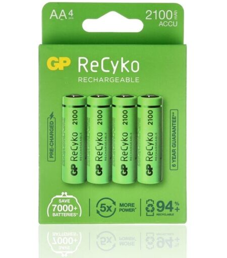 GP Batteries - 201212 - 4 Batterie Gp Ricaricabile Recyko, Stilo aa, 2100 Mah, Blister