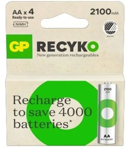 GP Battery Recyko Batteria Ricaricabile 12V Stilo AA 2100mAh (Confezione 4 Pezzi)