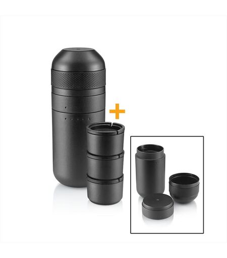 WACACO MINIPRESSO KIT serbatoio da 100ml per Minipresso NS o GR e 3 cestelli per caffè macinato aggiuntivi - Minipresso Kit è una combinazione di Minipresso Tank+ e tre cestelli filtro Minipresso GR aggiuntivi con tappi. I cestelli filtro, pieni di caffè macinato, possono essere riposti all'interno del capiente serbatoio dell'acqua. È un modo semplice per trasportare tutto ciò di cui hai bisogno per preparare caffè espresso per te e i tuoi amici durante una lunga escursione di un giorno. Contiene tre cestelli filtro con tappi e una tazzina incorporata. Questo kit non è compatibile con Minipresso NS2. ...