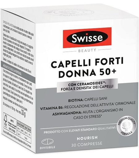 Swisse - CAPELLI FORTI DONNA 50+ - Descrizione Integratore alimentare ricco di nutrienti, scientificamente progettato con una combinazione di vitamine, estratti di erbe naturali e un complesso Ceramosides per sostenere la forza dei capelli e il benessere generale, anche durante la pre - menopausa e… ...