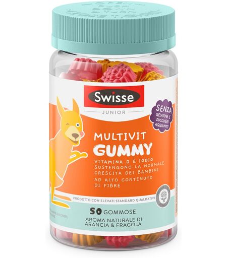 Swisse MULTIVIT GUMMY - Descrizione Formula multi - nutriente con vitamine, minerali e un alto contenuto di fibre, scientificamente studiata per integrare la nutrizione dei bambini dai 4 anni di età, in un delizioso formato in pastiglie gommose agli aromi naturali di arancia e fragola. Senza colora… ...