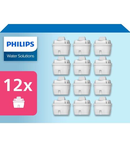 Philips - Water Cartucce filtranti sostitutive Filtrazione Avanzata, 12 unità, compatibili con Brita, riducono microplastica, cloro, calcare, metalli