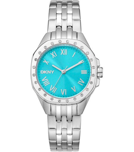 INFORMAZIONI GENERALI.Collezione:DKNY.Modello:Brooklyn Mini.TARGET.Female.Fashion.Adult.MOVIMENTO E FUNZIONALITÀ.SEIKO.Quartz.3 hands.CASSA.Stainless Steel.Silver grey.Spessore 7mm.Diametro 30mm.CINTURINO/BRACCIALE.Stainless Steel.Silver grey.Larghezza 12mm.Lunghezza 17cm.QUADRANTE.Turquoise. ...