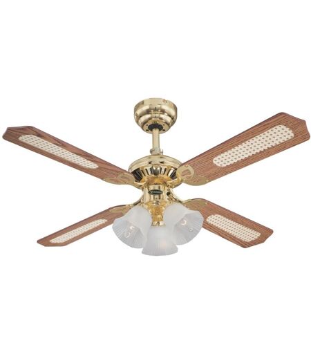 Westinghouse Lighting 78199 Ventilatore Da Soffitto In Ottone Lucido Da 105 Cm Princess Trio, Kit Di Luce Con Vetro Smerigliato, Finitura In Ottone Lucidato, Pale