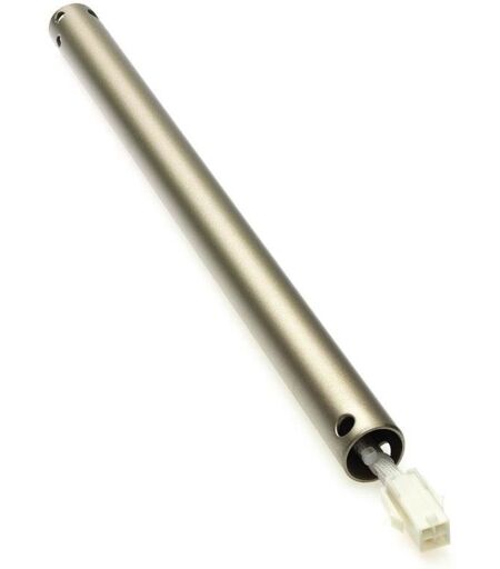 Con prolunga per cavo integrata e spina a clic Ideale per stanze con altezza del soffitto pari a 3.0 m Solo per il montaggio a sostituzione dell'asta di prolunga corta fornita in dotazione Adatta a i tutti i modelli Westinghouse eccetto Everett, Celestia e Celestia II I ventilatori a soffitto devono essere installati correttamente, prendendo in considerazione la dimensione e l'altezza della stanza, al fine di garantire un funzionamento efficiente. Per una circolazione dell'aria e un raffrescamento ottimale, le pale del ventilatore dovrebbero trovarsi a circa 2,5 - 3 metri dal pavimento. Quindi, per soffitti più alti di 3 metri, l'asta intermediata fornita deve essere sostituita con un'asta di prolunga. 46 cm/inch Titanium all' asta prolunga per l' uso con Westinghouse ventole con doppio supporto o all' asta Systems. ...
