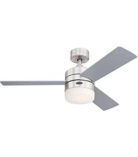 Westinghouse Lighting 73060 – Ventilatore da soffitto led moderno Alta Vista con luce e telecomando, 105 cm, finitura cromata satinata, vetro smerigliato opale