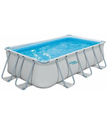 DESCRIZIONE : PISCINA COLORE BLU SUMMER WAVES ELITE FRAME RETTANGOLARE 400X200X100 CM - COMPLETA DI SCALETTA E FILTRO A CARTUCCIA Piscina fuori terra rettangolare 4x2x1 m adatta a a chi cerca comodità e divertimento. Piscina con struttura in metallo e facile da montare in soli 45 minuti. Tessuto resistente a lungo ed interno rifinito con disegno a mosaico. Capacità di 7,075 litri. La piscina viene fornita completa di scaletta di sicurezza e filtro a cartuccia con capacità di aspirazione di 2.27 L/h Vantaggi : Materiale duraturo e resistente nel tempo Adatto a tutta la famiglia Filtro per la pulizia dell'acqua inclusa Montaggio facile e veloce Montaggio : Installare la piscina su una superficie perfettamente piana e libera da oggetti che potrebbero danneggiare la struttura Inserire i tubi in metallo come da manuale di istruzioni Riempire la piscina con acqua CARATTERISTICHE DEL PRODOTTO Capacità (L)7.075 L Accessori scaletta di sicurezza e pompa a filtro Forma rettangolare Marca Summer ...