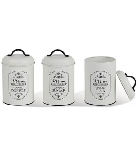 HOMEA DECORATION - Maestro MR-1771-3CS Paris - Set de 3 contenitori de conservazione de metallo per zucchero e caffè, tè, 3 x 11,3 x 18,5 cm, colore