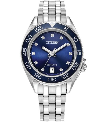 Categoria: Orologio. Genere: Donna. Famiglia: Solare. Tipo di meccanismo: Solare. Display: Analogico. Materiale della cassa: Acciaio inossidabile. Colore della cassa: Grigio. Materiale del bracciale: Acciaio inossidabile. Colore del bracciale: Grigio. Colore del quadrante: Blu. Tipo di vetro: Minerale. Chiusura: Farfalla. Resistenza all´acqua: 10 ATM. Diametro del quadrante: 35.4 mm. ...