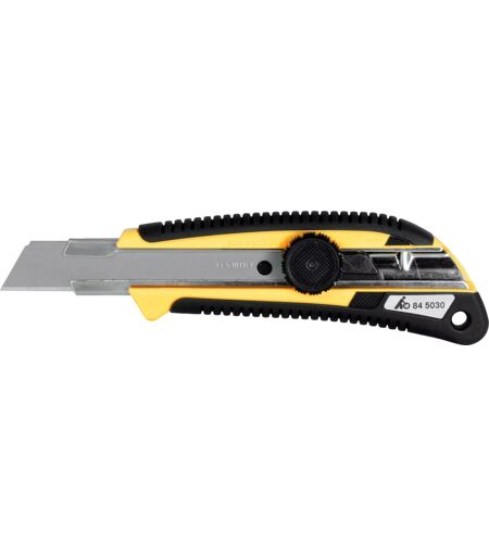 Descrizione Esecuzione: Lame estraibili e rientranti, esecuzione precisa in metallo. Lame di qualità estremamente affilate e di grande durata. Impugnatura bicomponente ergonomica con gomma per lavorare in sicurezza. Fissaggio lame assolutamente sicuro grazie alla vite di bloccaggio zigrinata. Con 1 lama preincisa a settori (simile a n. art. 845010 Dim. 10), a 8 livelli, 18 mm di larghezza. Ricambi: Per le lame di ricambio vedi n. art. 845010 Dim. 10 - 845019 Dim. 50; 845021 Dim. 10 e 845023 Dim. 50. Dati tecnici Tipo di prodotto Cutter Lunghezza lama, mm 100 Larghezza lama, mm 18 Spessore lama, mm 0,5 Numero di settori preincisi 8 Lunghezza coltello senza lama, mm 160 ...