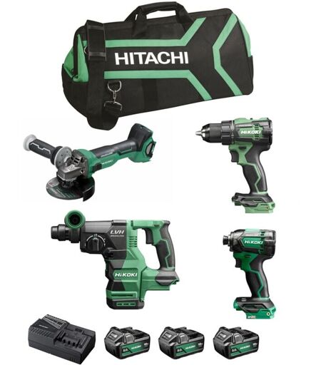 HIKOKI - Kit KC18DEWHZ (DS18DE + WH18DC + G1813DA + DH1826DA + 3 x 5,0 Ah + UC18YFSL + Bolsa de transporte)