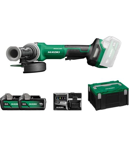 HIKOKI Smerigliatrice angolare a batteria G1813DF (18 v, 2 batterie de de agli ioni di litiode 5,0 Ah, dischi abrasivi ø: 125 mm, mandrino de azionamento: