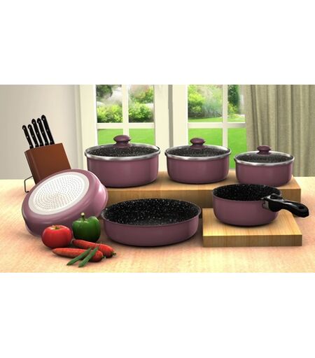 HERZBERG Batteria Di Pentole Manico Rimovibile 10 Pezzi Di : Rosso