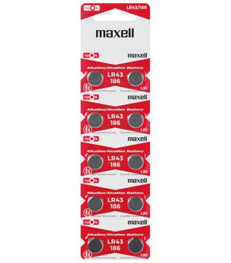Maxell Blister da 10 batterie a bottone alcaline LR43