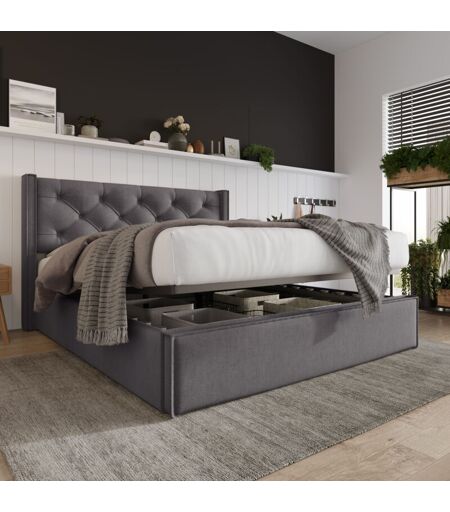 OKWISH - Letto imbottito idraulico, 160x200 cm, con rete a doghe in metallo, cotone grigio chiaro